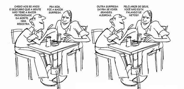 A série de desenhos "Ensaio sobre a velhice", publicada na edição 183 da revista BRAVO!, nos apresenta as reflexões de Ziraldo, um dos mais importantes artistas brasileiros ligado às artes gráficas, sobre a chegada aos 80 anos. Ele foi o criador da "Turma do Pererê", que marcou época no Brasil do início dos anos 1960, de personagens como a "Super Mãe" e do tão famoso "Menino Maluquinho", livro já adaptado para o teatro, a TV e o cinema.